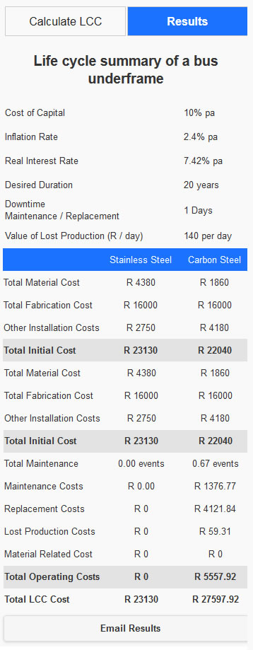 The use of LCC shows, however, that stainless steel is in fact a most cost effective material for many applications.
